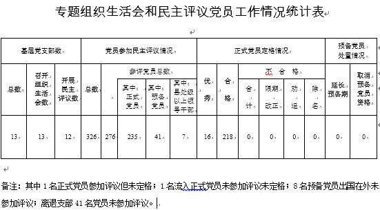 2017年专题组织生活会和民主评议党员工作情况统计表
