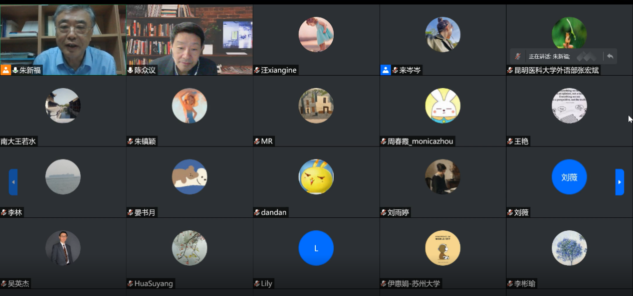 2021年10月14日晚7点,中国社会科学院学部委员陈众议研究员通过腾讯会议平台,应邀为直播 师生讲学。讲座由外国语学院院长朱新福教授主持,主题为“话语之魂与学科建设的若干问题”。来自全国各地400余名从事外国文学研究的教师、研究员与青年学者旁听了此次在线讲座。
