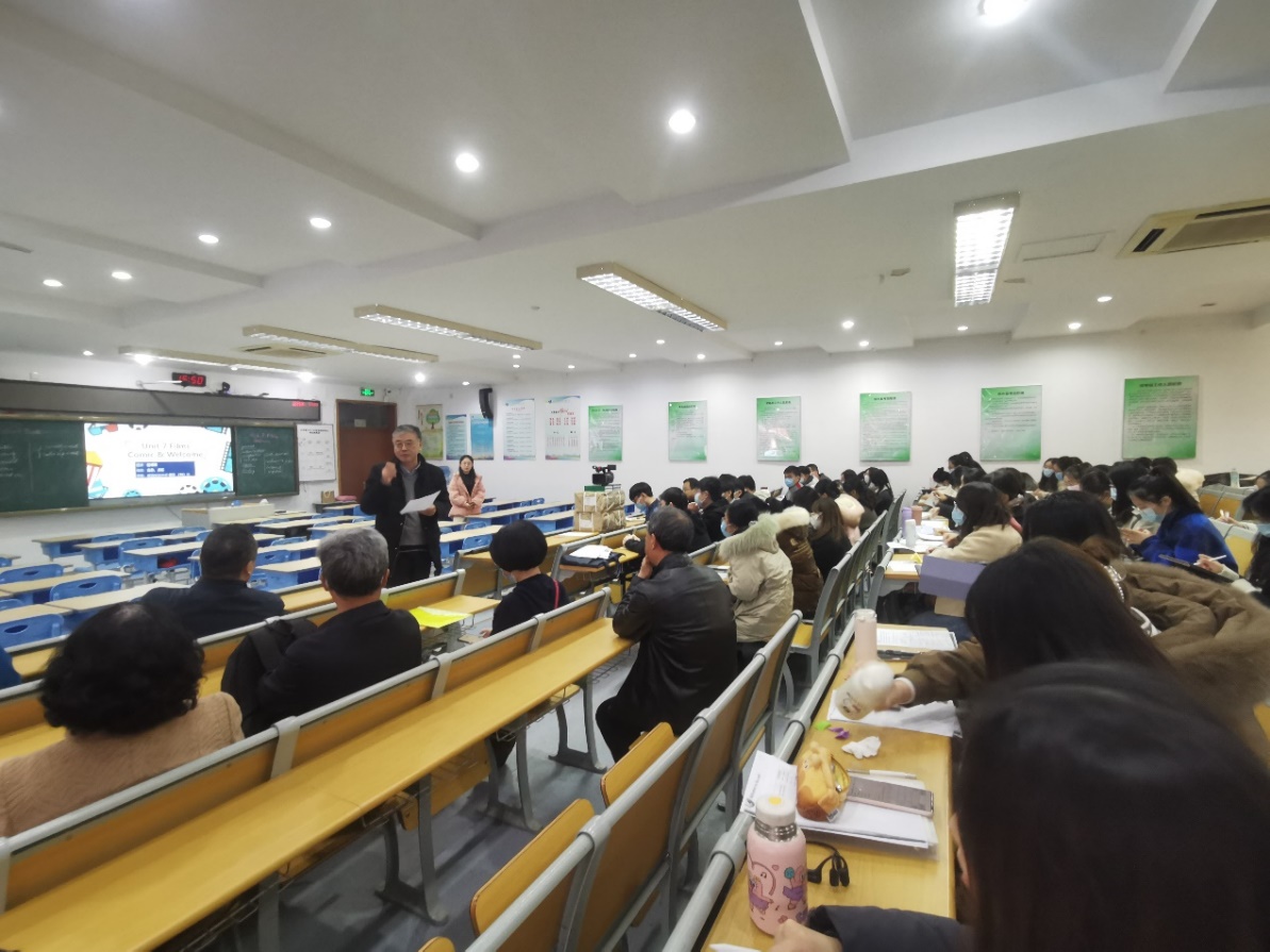 公开课结束之后,外语学院领导和有关指导老师分别给予了点评。方红老师作为任泽琪同学的指导老师,高度赞扬了她的专业素质;古海波老师从理论层面总结了一名优秀教师应该扮演的五种角色:教师应该是优美语言的展示者,学生经验的利用者,情感价值的渗透者,支架的提供者以及对话的制造者。同时在新课标的指引下,教师还应该注重培养学生的思维品质,在不断的反思和实践中丰富教学形式,真正做到“教学即生活”。最后外语学院朱新福院长分享了他在听课过程中的心得体会,指出一名优秀教师在具备扎实基本功的基础上要明确课堂目标,把握重点难点,合理利用时间,注重师生互动。影视赏析作为新型教学手段,把握好度的同时还要注意意识形态的正确性。