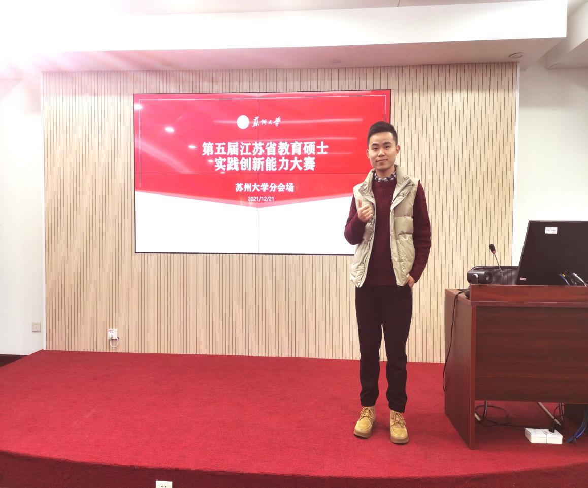 第五届江苏省教育硕士实践创新能力大赛于12月19至21日在江苏大学举行。直播 20级学科教学(英语)专业研究生袁仔鑫(指导教师衡仁权副教授)、陆珊珊(指导教师王海贞副教授)分别获得特等奖和二等奖(全省英语组第一名和第四名)。