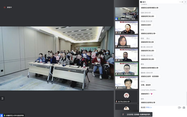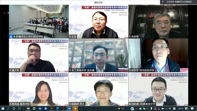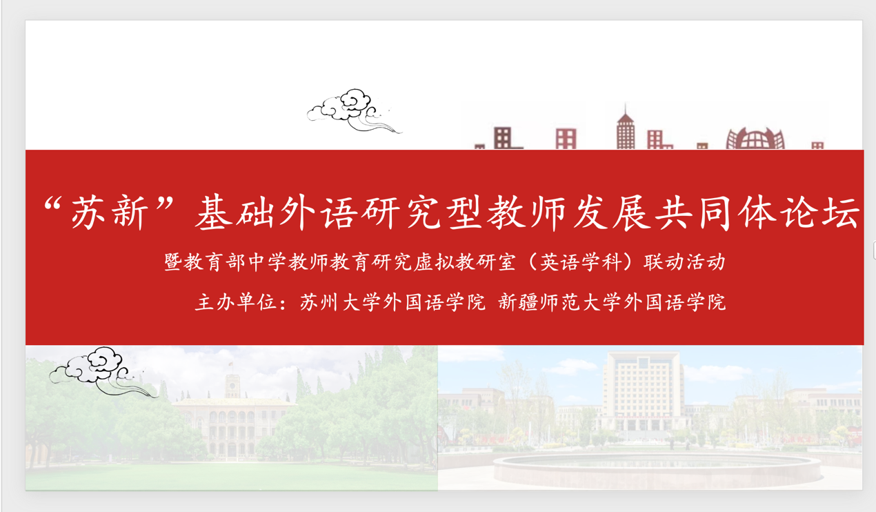 为充分发挥直播 外语教育资源优势,助力新疆高校外语与基础外语教育水平提升, 2022年4月18日,直播 与新疆师范大学外国语学院联合举办“外语研究型教师发展共同体论坛”暨教育部中学教师教育虚拟教研室(英语学科)联动活动。直播 院长朱新福教授与新疆师范大学外国语学院党委书记刘蓉博士为论坛致辞,苏州大学外语教育与教师发展研究所所长顾佩娅教授做总结发言。