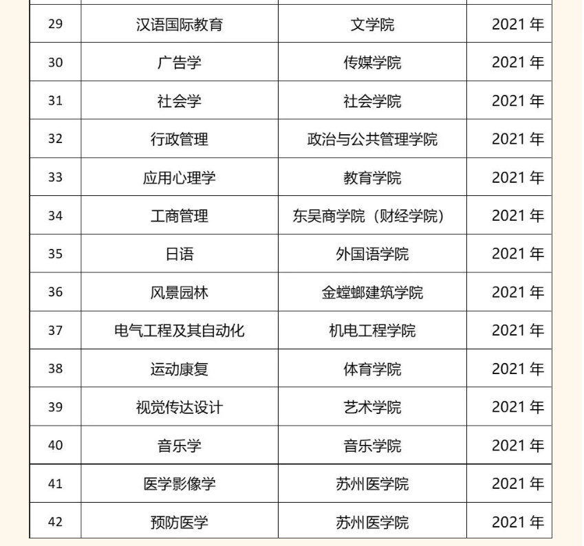 苏州大学2021年度国家级一流本科专业建设点入选名单