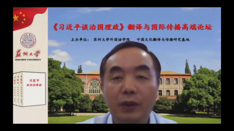 7月11日,我校成功举办“《习近平谈治国理政》翻译与国际传播高端论坛”。来自外交部、中国外文局、外文出版社、北京外国语大学、上海外国语大学、中国海洋大学、四川外国语大学、上海对外经贸大学、苏州大学等国内资深翻译家和著名学者以线上方式参会。中国译协常务副会长黄友义,我校党委常委、副校长张晓宏,人文社会科学处处长于毓蓝,外国语学院院长朱新福等出席了开幕式。开幕式由朱新福主持。