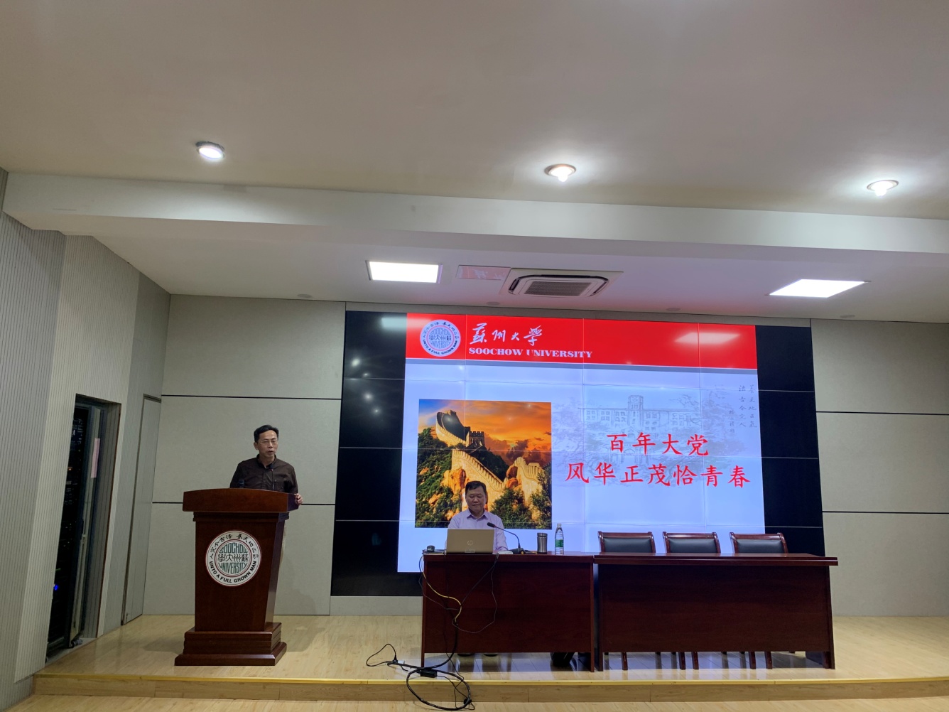 5月12日下午,苏州大学党史学习教育宣讲团成员、马克思主义学院姜建成教授为外国语学院教职工做了题为“追忆党的光辉历程,牢记共产党人的初心使命”的宣讲报告。报告会在崇远楼201室举行,学院领导、教职工参会,学院党委书记严冬生主持。
